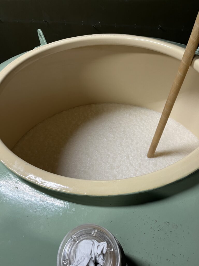 こうして麹菌がついたお米が、だんだんと綺麗な粒になっていくのですね。